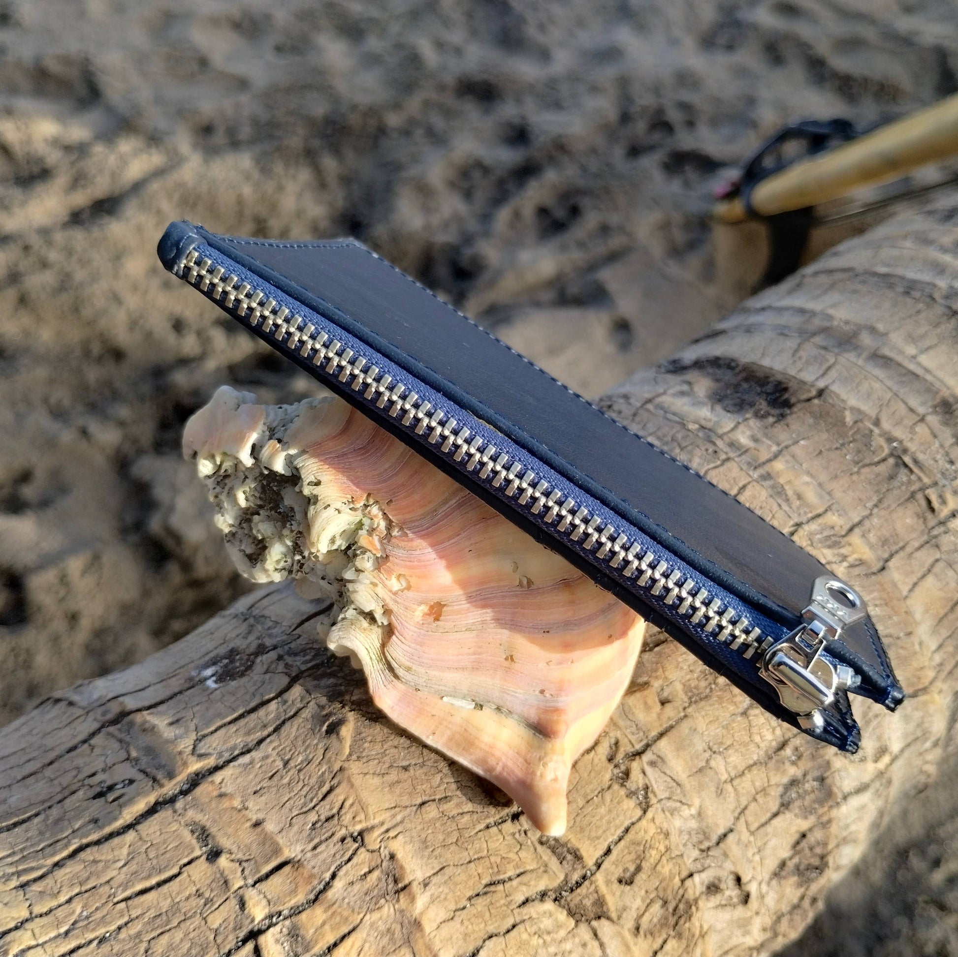 The Navy Blue Zippered Card Wallet "The Estate" is expertly crafted with the highest quality YKK nickel zipper from the USA. Made from full-grain artisan leather in Nicaragua, it boasts 5 card slots and a zippered pocket for practicality and durability. Every aspect of this wallet, from the thread quality to the stitching, is given extra attention for a lasting and timeless design. Plus, by purchasing this wallet, you are supporting fair trade and upcycling, as well as providing local artisans with opportunities for themselves and their families.